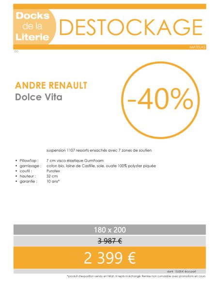 Les Docks de la Literie ont sélectionné pour vous ce fabricant et expert de literie haut de gamme depuis 1984. Fabriqués en France sur le site de Saint Gildas des Bois, les produits André Renault sont uniques et soumis aux tests les plus exigeants du marché.